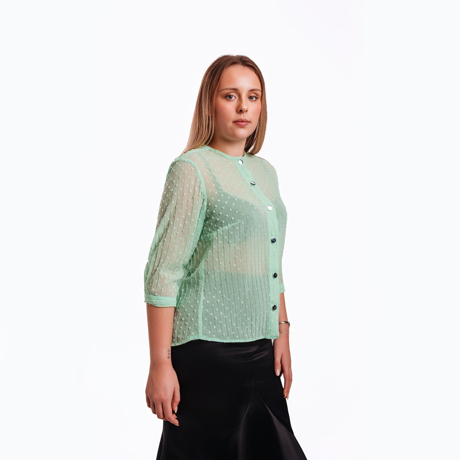 - Lightweight mint textured blouse with subtle dot detailing
